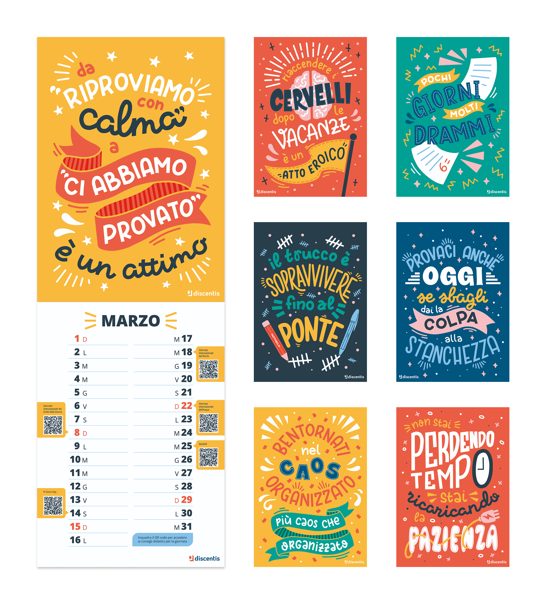 Calendar design for Discentis, distributed to 15,000 teachers across Italy.