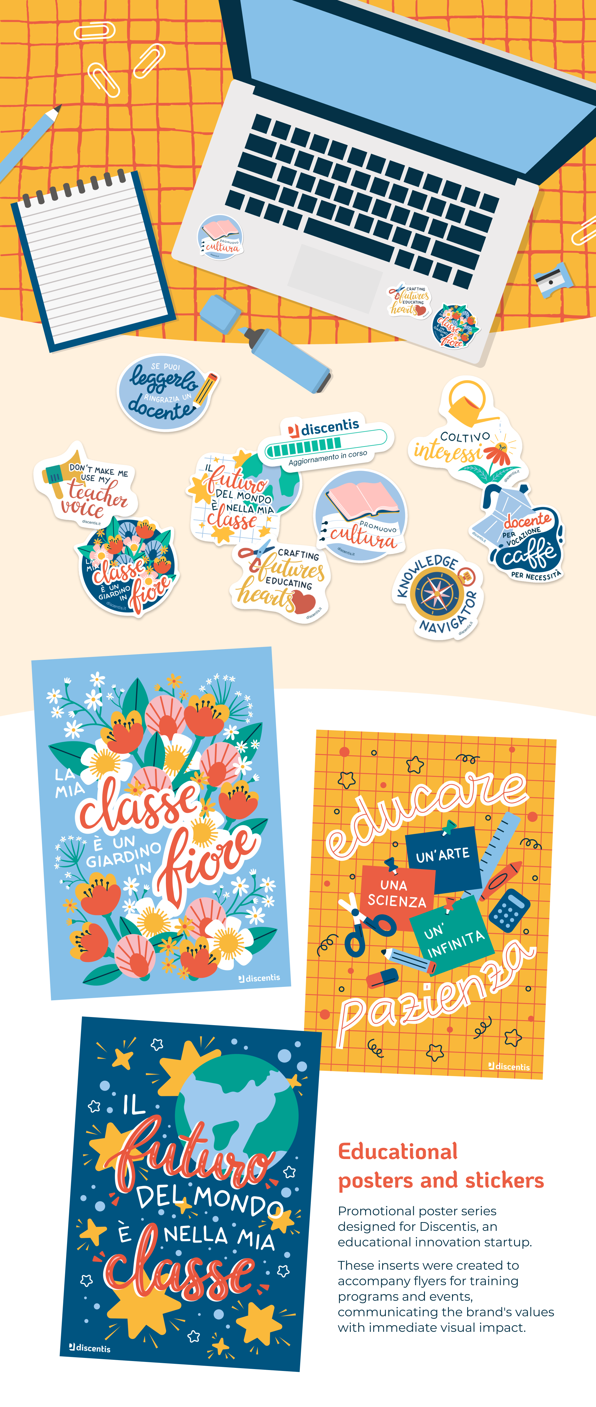 Posters and stickers design for an educational startup